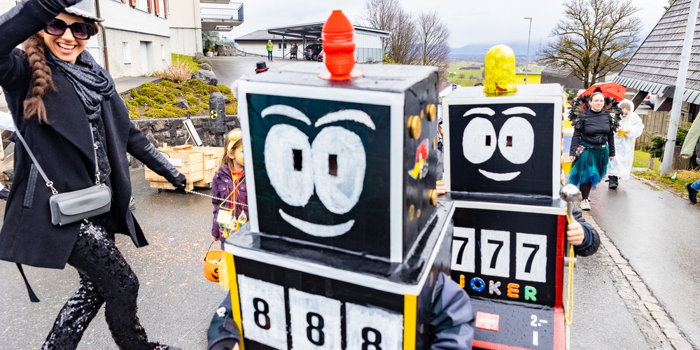 Auch die jüngsten Fasnächtler kamen nicht zu kurz. Beim Kinderumzug liefen sie in bunten Kostümen vom Tal hinauf zum Schulhaus und hatten dabei sichtlich Spass. Angeführt von den Bazzaschüttlern zogen sie fröhlich durch den Eichberg und genossen den Umzug in vollen Zügen.