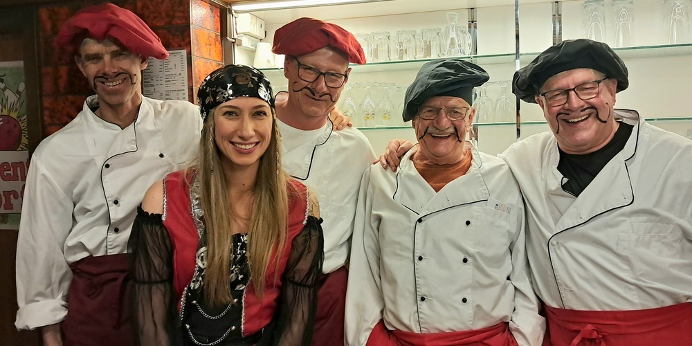 Die Schnuddergoofa wurden 2018 gegründet und bestehen aus ehemaligen Mitgliedern der Bleandestöbler – doch von «Pensionisten» kann keine Rede sein! «Wir sind alles gute Kollegen und geniessen eine tolle Zeit miteinander», so die Truppe. Und das merkt man! Ihr Programm ist straff getaktet: In fünf Lokalen spielen sie jeweils eine Stunde, bevor um 1.00 Uhr der wohlverdiente Mitternachtssnack wartet.