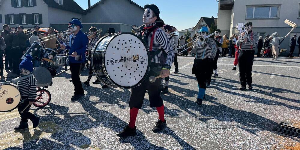 Natürlich durfte die Musik nicht fehlen. Mehrere Guggenmusiken begleiteten den Umzug mit mitreissenden Rhythmen und sorgten für die perfekte Fasnachtsstimmung.