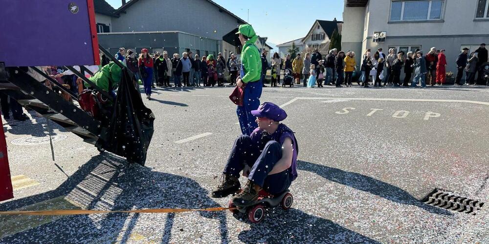 Die Fasnacht wäre nicht komplett ohne das allgegenwärtige Konfetti. Ob aus Konfettikanonen abgeschossen oder von Hand geworfen, die bunten Papierfetzen fanden ihren Weg überall hin – in Haare und auch Kleidung.
