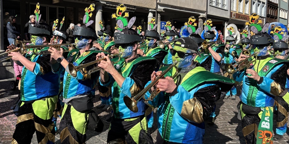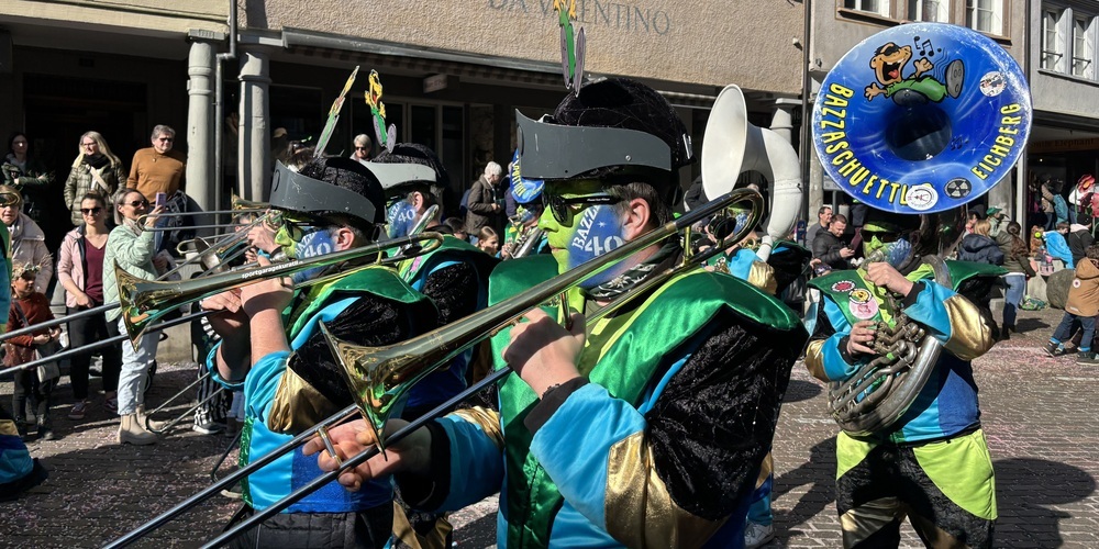 Ein Konzert der lokalen Guggenmusik «Städtli-Chlepfer» rundete den Besuch der Röllelibutzen ab. Die virtuosen Musiker brachten die Fasnachtsstimmung unter die Zuhörer und rissen diese mit ihrem «organisierten Lärm» mit. Es war wahrlich eine Fasnacht für alle.