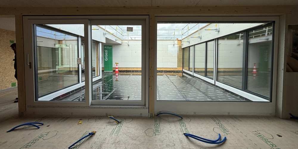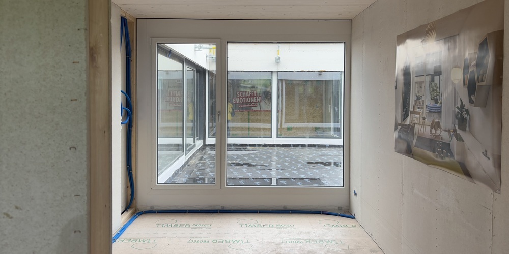 Das Spezielle an den Atrium-Häusern ist, dass sie nicht einfach nur Einfamilienhäuser sind. In ihnen steckt mehr – im wahrsten Sinne des Wortes. Denn in der Mitte eines jeden Hauses befindet sich ein rund fünfzig Quadratmeter grosser Platz, der nach Belieben selber gestaltet werden kann. Rundherum sind Fenster eingelassen, die in die Küche, die Stube und auch die Schlafzimmer blicken lassen – wenn man dies denn will.