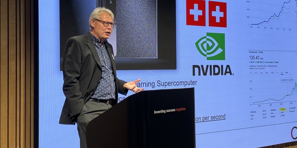Prof. Dr. Guido Schuster von der OST hatte das Wort: «KI existiert schon lange. Bereits 1958 wurde darüber geschrieben – damals in der New York Times. Den ultimativen Durchbruch erreichte KI allerdings erst viele Jahre später mit der Einführung von ChatGPT.» Das heute weltbekannte KI-Modell machte die künstliche Intelligenz von einem Nerd-Spielzeug zum Alltagsgegenstand. «Die KI ist mit der Entdeckung des Stroms gleichzusetzen.»