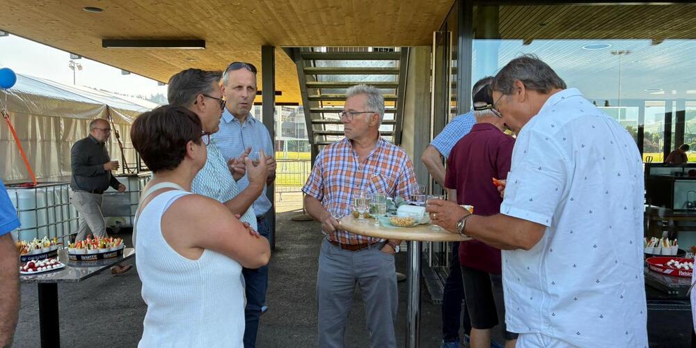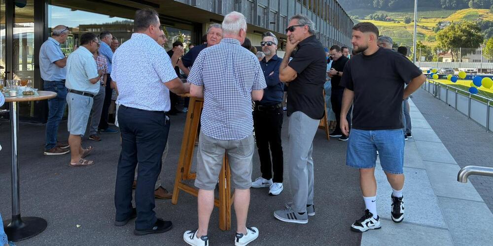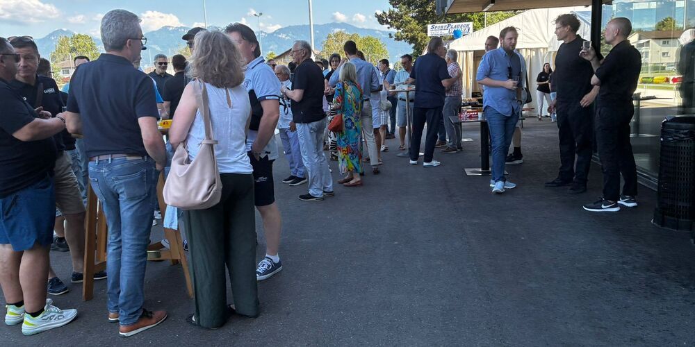 Der Abend begann mit einem Apéro bei schönstem Wetter. Die Gäste aus Politik, Verwaltung, Sponsoren und dem Verein nutzten die Gelegenheit, miteinander ins Gespräch zu kommen und die neue Anlage zu bestaunen. Kleine Häppchen sorgten für Stärkung, während man sich ein Bild von der modernen Infrastruktur machte. Die Besucher zeigten sich beeindruckt von den neuen Gebäuden und dem Spielfeld.