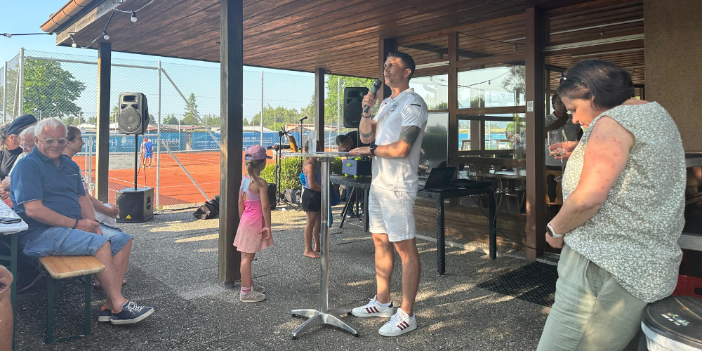 Ein feierlicher Höhepunkt folgte um 18.00 Uhr mit der offiziellen Ansprache des Präsidenten Janique Künzler, der in bewegenden Worten auf die Entwicklung des Vereins zurückblickte. Unterstützung erhielt er von Thomas Keel (Verantwortlicher Sport-verein-t), der die Verdienste des Tennisclubs im lokalen Sportleben würdigte und die Bedeutung des Ehrenamts betonte.