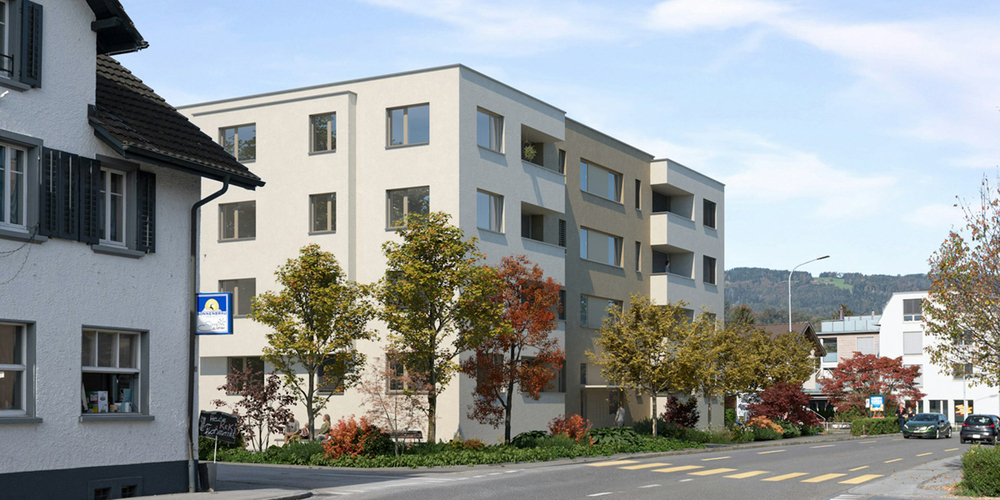 An der Kirlenstrasse in Altstätten entstehen zwei Mehrfamilienhäuser mit insgesamt 13 Eigentumswohnungen. Die Lage bietet kurze Wege zum Bahnhof und zur Stadtmitte – ideal als Ausgleich zum hektischen Alltag. Die hochwertigen Wohnungen sind modern konzipiert; Bezug noch im 2025.