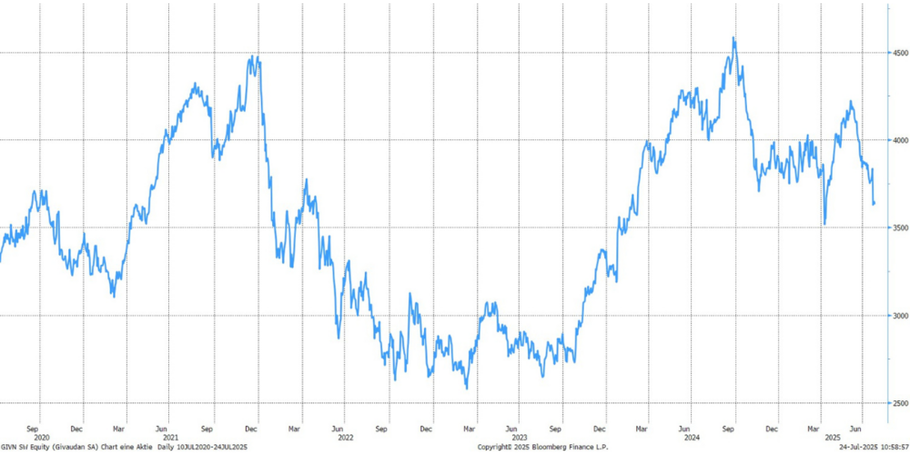 Die Aktie preist kurzfristige Sorgen ein, während das Geschäftsmodell dank defensiver Nachfrage, hoher Preissetzungsmacht und stabiler Margen als solide gilt. Auch profitiert Givaudan vom Trend zu gesunder Ernährung mit Produkten für pflanzliche Proteine und natürlichen Ergänzungsstoffe. Wer auf die Qualitätsaktie mit widerstandsfähigem Geschäftsmodel setzt, kann den aktuellen Rücksetzer nutzen, um eine Position auf- oder auszubauen.