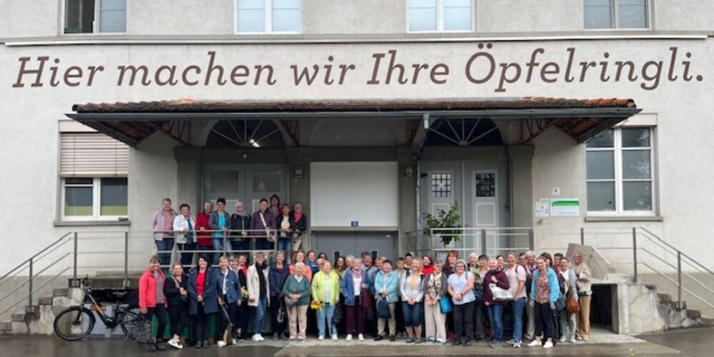 In zwei Gruppen wurde die Produktion gezeigt, vom Apfel bis zum fertigen «Apfelringli», mit all den Herausforderungen und Arbeiten, die dabei anfallen. Nach einer sehr informativen Führung ging es zu Fuss zum Hofladen, wo die Frauen mit einem leckeren Apéro verwöhnt wurden und zudem die Gelegenheit hatten, etwas für die Daheimgebliebenen zu kaufen.