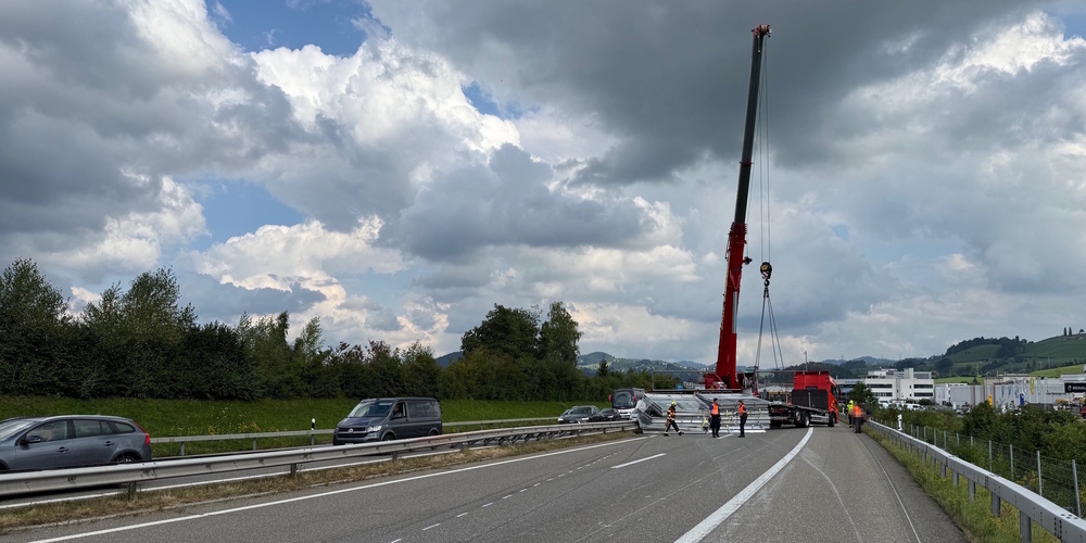Am Freitag (22.08.2025), kurz vor 15:40 Uhr, ist der Anhänger eines Lastwagens auf der Autobahn A1 zwischen Gossau und St.Gallen-Winkeln umgekippt. Die Fahrzeugkombination hat die Autobahn blockiert. Dies führte zu einer Vollsperrung der Autobahn in Richtung St. Margrethen und langem Rückstau. Verletzt wurde niemand.