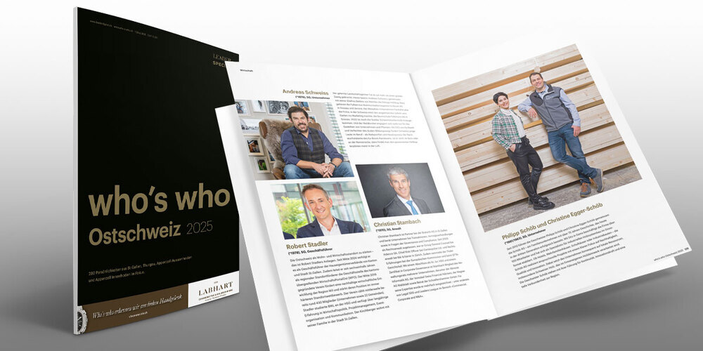 In der gerade erschienenen aktuellen dreizehnten Ausgabe des «who’s who der Ostschweiz» werden inzwischen 280 Persönlichkeiten aus den Kantonen St.Gallen, Thurgau und beiden Appenzell, die sich um die Ostschweiz besonders verdient gemacht haben, vorgestellt. Sie haben sich durch ihr Wirken wirtschaftlich, politisch, wissenschaftlich oder bildungstechnisch hervorgetan. Sämtliche bisher porträtierten Ostschweizerinnen und Ostschweizer finden Sie auf dem Onlineportal who-s-who.ch.