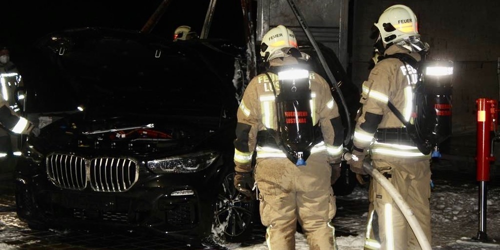 Genau zu dieser Erkenntnis gelangten auch die Florianijünger der Feuerwehr Lustenau in der Nacht auf Sonntag. Ein in einer Garage am Stromkabel hängender Plug-In-Hybrid fing an zu brennen. Zunächst versuchten die Fahrzeughalter selbst zu löschen. Dann war die Feuerwehr zur Stelle, löschte vermeintlich den Brand und schleppte den BMW-SUV zum Feuerwehrhaus, im es unter Beobachtung halten zu können.