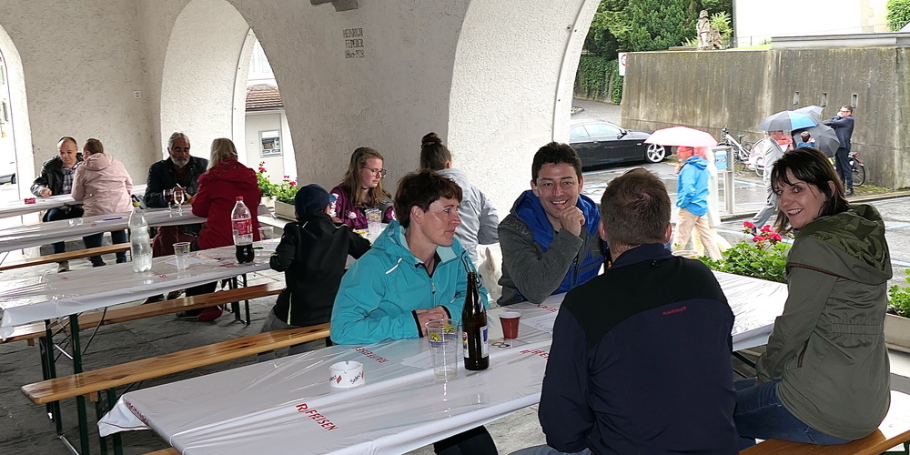 Doch es kam keine Feierstimmung auf. Petrus hatte diesmal etwas dagegen und schickte ein Regentief über das Weindorf. So tröpfelte es immer wieder einmal vom Himmel. Und so war der Besuch lange nicht so gut, wie bei früheren Veranstaltungen.
