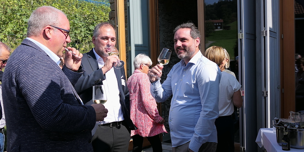 So standen die Gemeindehäuptlinge beim Apéro noch lange zusammen, genossen das eine oder andere Glas vom hervorragenden Romenschwandener Weisswein. Und hatten natürlich die Gelegenheit mit den hochrangigen Vertretern des Kantons St.Gallen, wie Regierungsrätin Susanne Hartmann, oder des Landes Vorarlberg, das durch Landesrat Marco Tittler repräsentiert wurde, über die gerne gelösten Probleme und Problemchen zu talken.